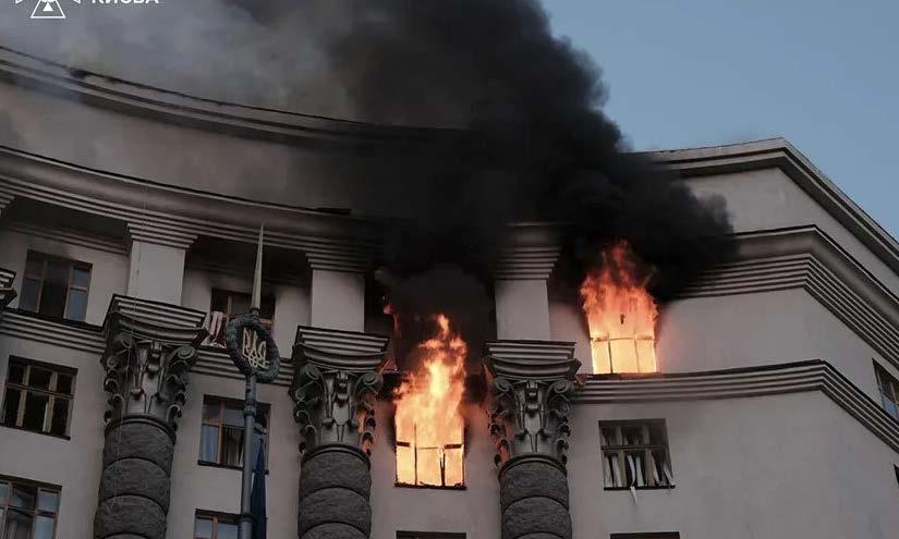 ucraniana, Yulia Sviridenko, en particular el techo y los pisos superiores de la sede del Gobierno quedaron afectados por el bombardeo.