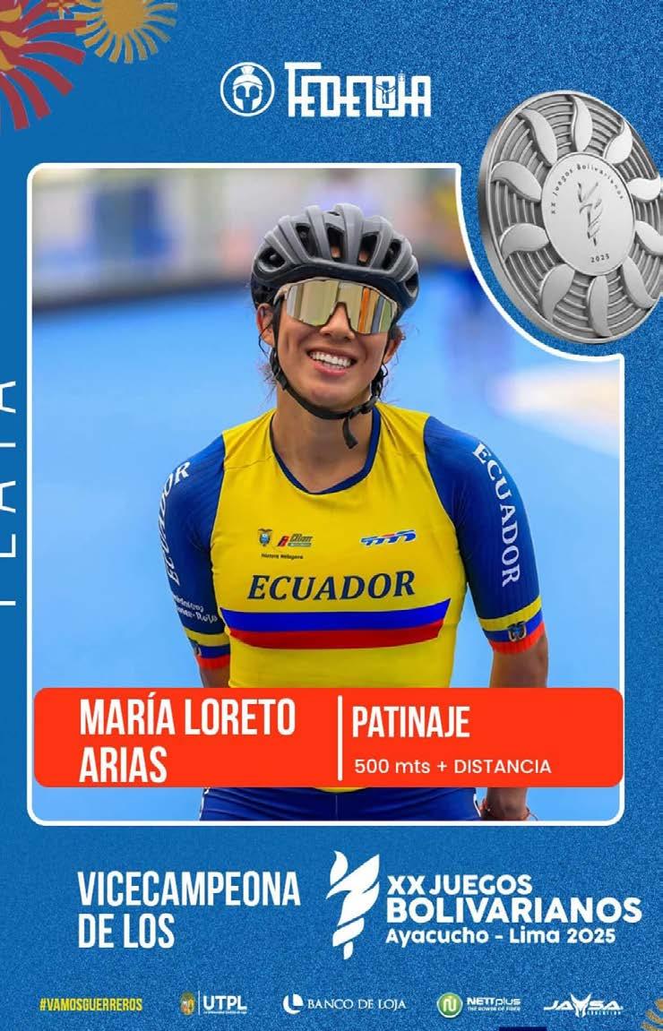 La lojana María Loreto Arias vuelve a demostrar su talento y entrega al conquistar la medalla de plata en la prueba de 500 metros + distancia en los XX Juegos Bolivarianos Ayacucho – Lima 2025, desarrollados del 22 de noviembre al 7 de diciembre de 2025.