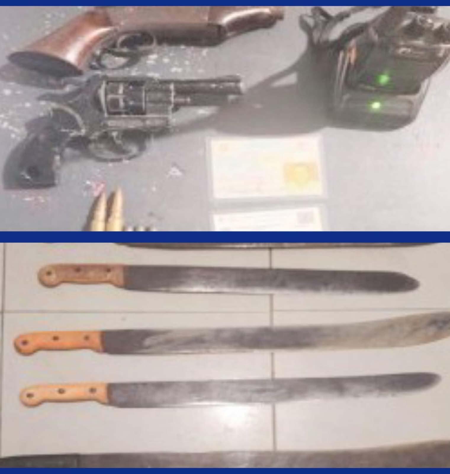 En esa residencia, que corresponde a Carlos Ch. O., mayor de edad, la Policía Nacional encontró una cartuchera y un revólver, de fabricación industrial; 5 balas; 5 machetes; y una radio walkie talkie, que el ciudadano no justificó su legalidad.