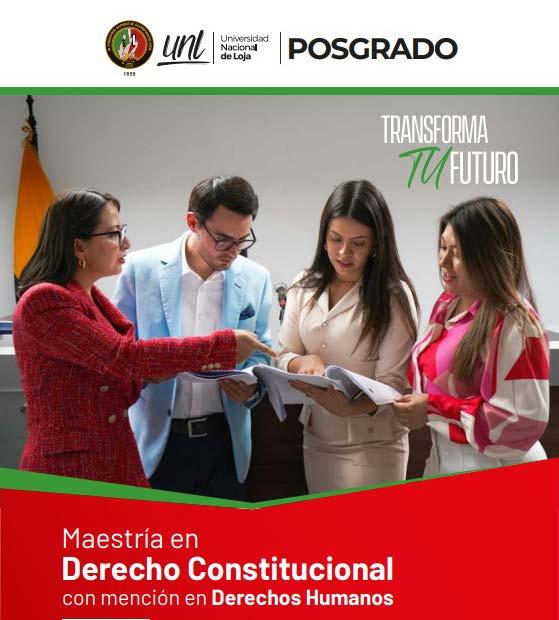 La Universidad Nacional de Loja (UNL) presenta la Maestría en Derecho Constitucional con mención en Derechos Humanos, única en el país con esta mención específica, diseñada para transformar conocimiento jurídico en impacto real: desde el litigio constitucional y el control de convencionalidad, hasta la asesoría en políticas públicas y reformas, con un fuerte anclaje en estándares internacionales de derechos.