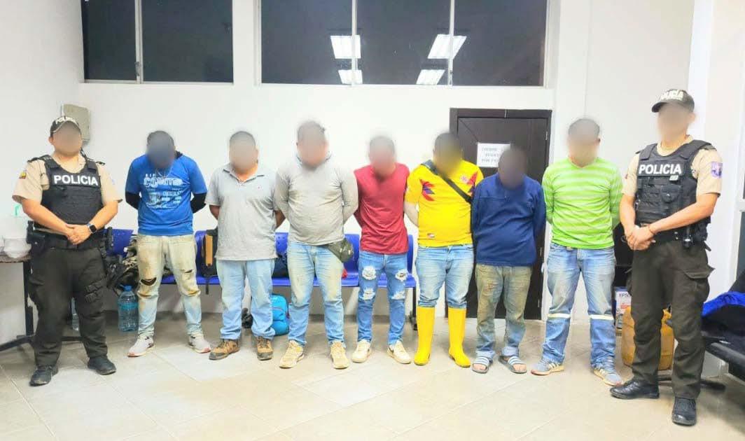 nal detuvo a Álex T. S., Darwin C. O., Herasmo Q. L., Hernán A. C., Jefferson C. R., Junior G. G. y Vinicio G. B., de 38, 34, 47, 40, 22, 29 y 20 años y de las provincias de Pichincha, Loja, Loja, Zamora Chinchipe, Loja, Zamora Chinchipe y Loja, respectivamente, por actividad ilícita de recursos mineros.