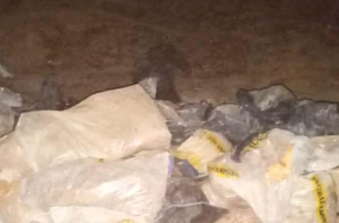 » Los costales que contenían el material aurífero fueron localizados por la Policía Nacional.