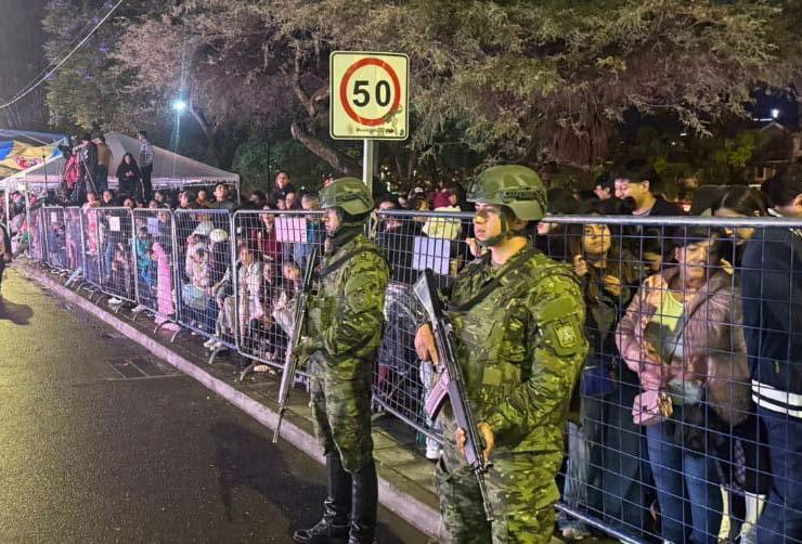 Los soldados del Grupo de Caballería Mecanizada Número 18 ‘Cazadores de Los Ríos’ la tarde del jueves 13 de noviembre de 2025 se desplegaron hacia el circuito cultural del Festival Internacional de las Artes Vivas de Loja (Fiavl).