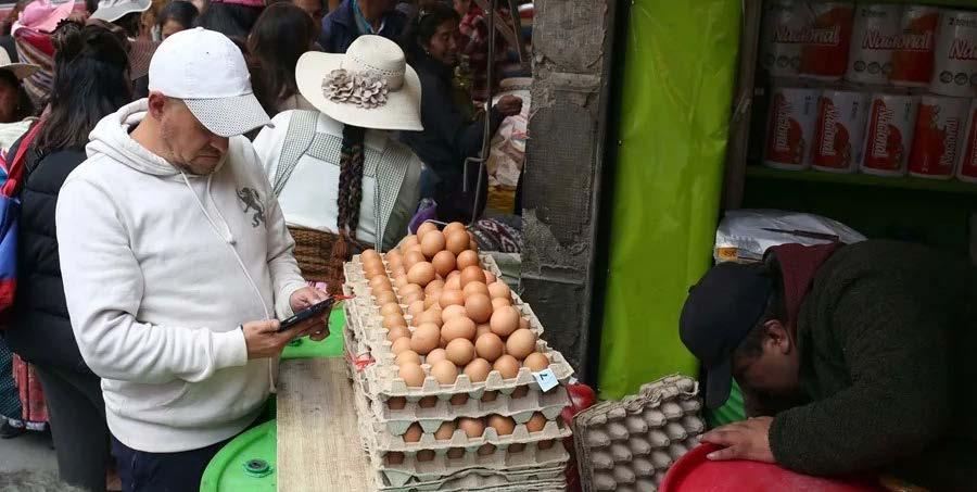 » Personas compran víveres en un mercado popular en La Paz (Bolivia).