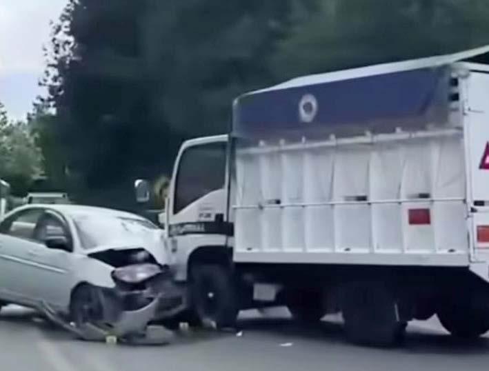 Los conductores de un automóvil y de un camión se im-