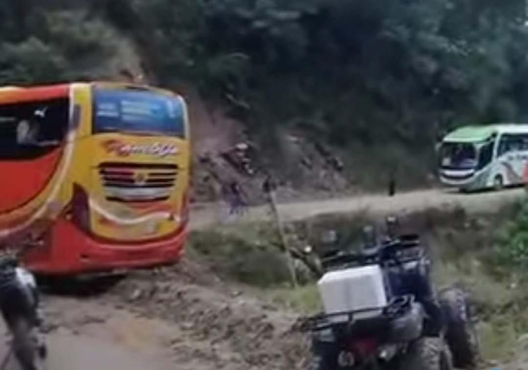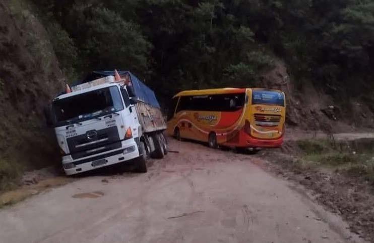 Varios automotores, especialmente de transporte público, quedaron atrapados ayer, en la carretera ZumbaPalanda, tramo barrio