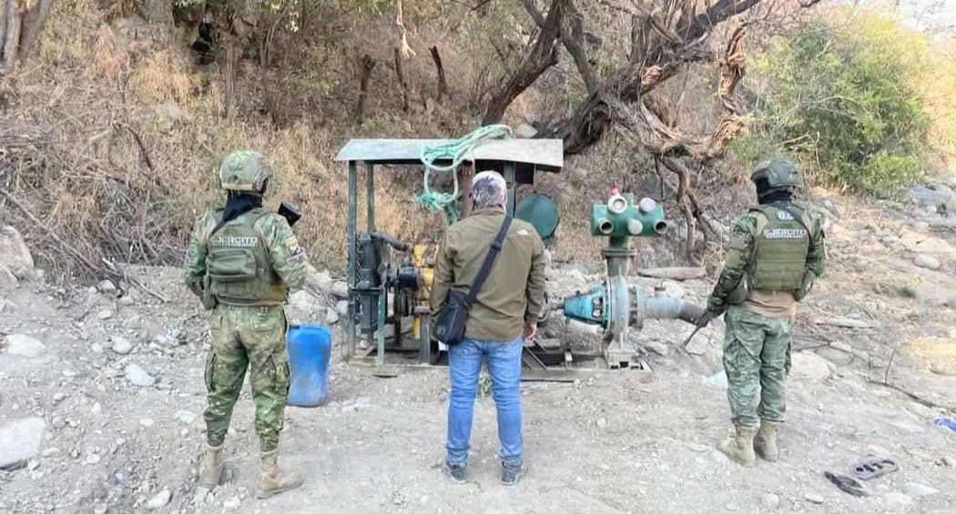 Los soldados del Ejército ecuatoriano el miércoles 17 de septiembre de 2025 ejecutaron un operativo, en el barrio Numbiaranga, de la parroquia Larama, del cantón Celica, de la provincia de Loja, y paralizaron las labores de minería ilegal.