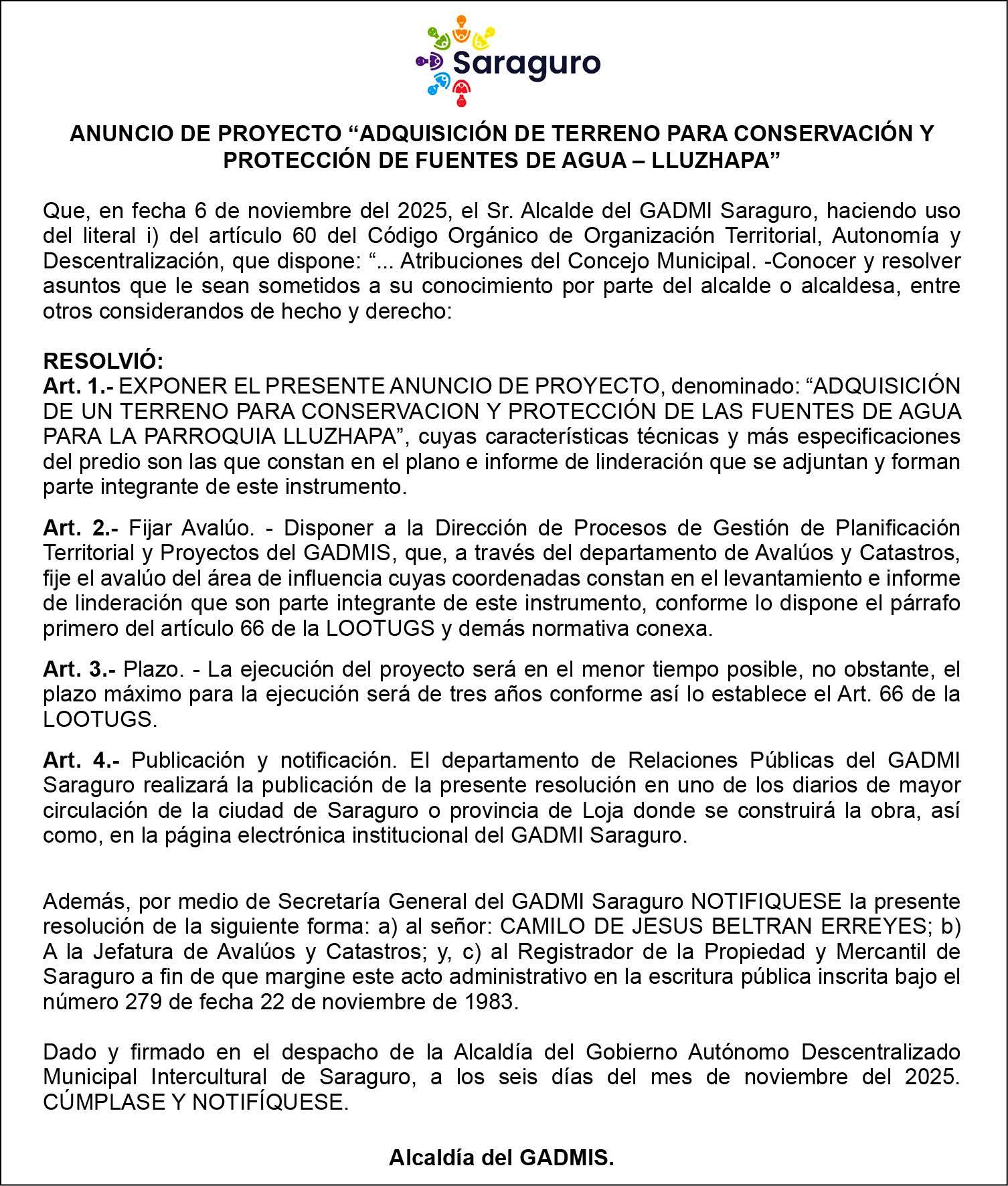 Exhorta al Gobierno Nacional a corregir los actos de corrupción denunciados a escala nacional y en la provincia de Loja. De igual manera, exige el cambio de autoridades, empezando por la gobernadora, Alexandra Jara Minga, quien, en su criterio, ha guardado silencio frente al estado de abandono de la provincia, especialmente en vialidad.
