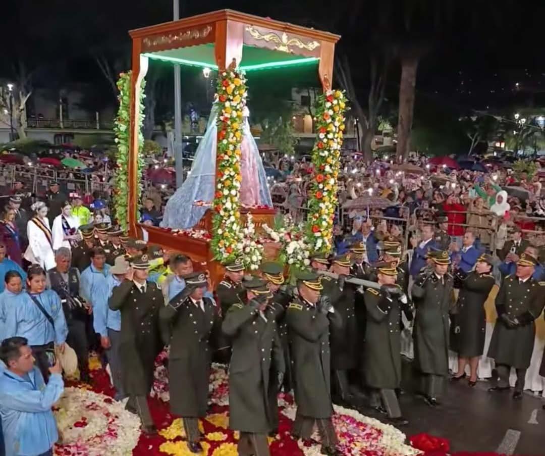 La alcaldesa, Diana Guayanay Llanes, entregó nuevamente la custodia de la imagen a la Policía Nacional, a través de Renato Cevallos Núñez, delegado del comandante General del cuerpo uniformado. Luego, la ‘Churona’ avanzó hacia la Catedral, donde la esperó una plaza colmada de feligreses.