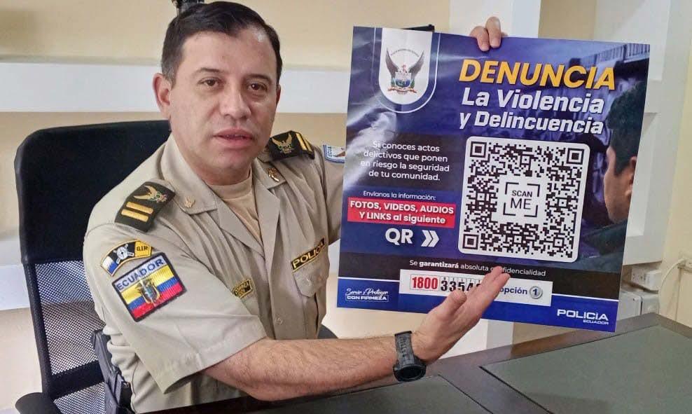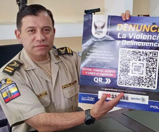 “Preocupados por la seguridad ciudadana se tomó la iniciativa de establecer un método de denuncia a través del Código QR que se colocó en los afiches que se han ubicado en lugares estratégicos”, indica Christian García Correa, con rango de teniente coronel, comandante de la Policía Nacional, situada en la provincia de