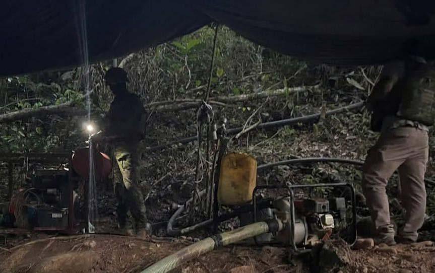 Los soldados de las Fuerzas Armadas paralizaron esa actividad con la retención de esa maquinaria; ellos, además, dejaron fuera de servicio una zaranda o clasificadora gravimétrica de oro con canalones tipo Z; que se encontró ahí.