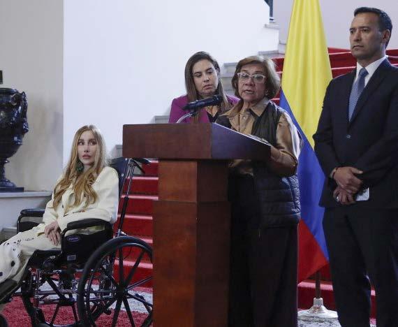 » La canciller de Colombia, Rosa Villavicencio (c), junto a la ministra de Comercio, Diana Morales, y el ministro de Defensa, Pedro Sánchez.