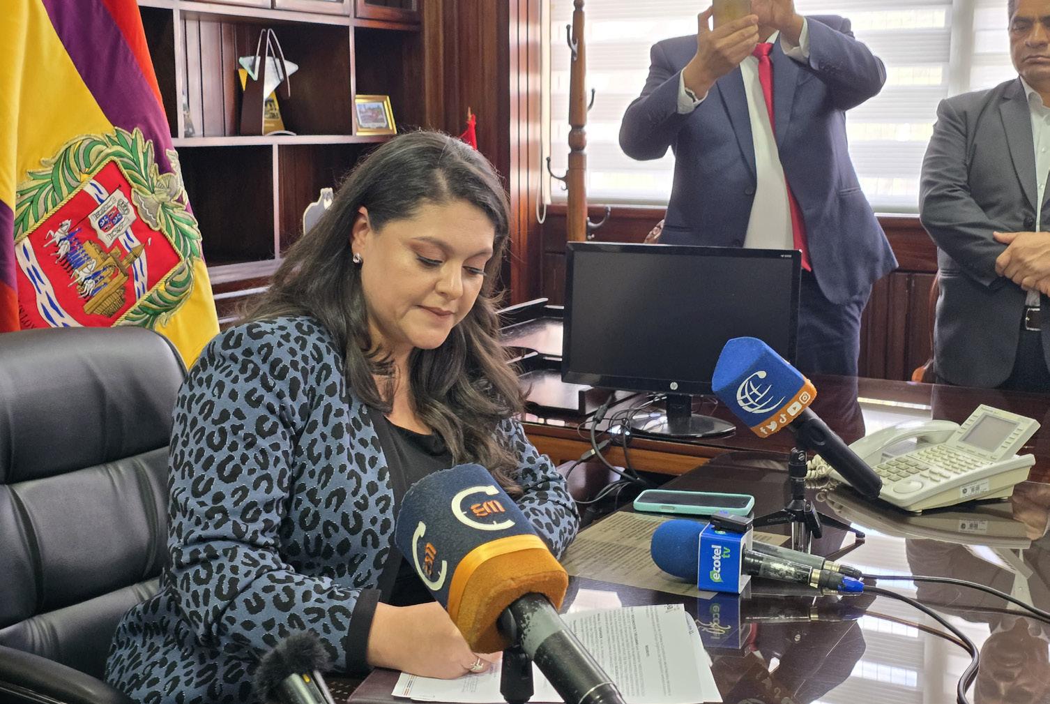 » Diana Guayanay Llanes firma el acta de resolución mediante la cual asume las funciones de alcaldesa del cantón Loja.