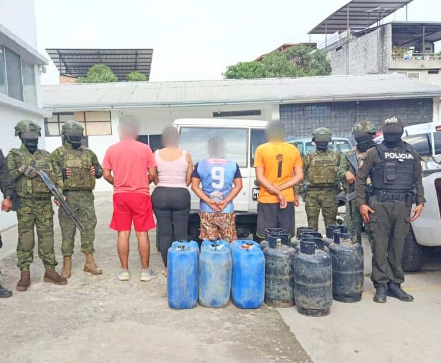 Los soldados tras retener a los ciudadanos y confiscar las bombonas de gas y las canecas comunicaron lo sucedido a la Policía Nacional, emplazada en la provincia de Loja, en el cantón Macará, quienes detuvieron a Heidy M. B., a José H. S., y a Marlon G. J., de las provincias de Guayas, Loja y Azuay, respectivamente; y aisló al adolescente, de la provincia de Loja, hasta la realización de la audiencia de formulación de cargos. A las 13:10, el miércoles 28 de enero de 2026, en la sala de audiencias de la Unidad Judicial Multicompetente, de la Corte Provincial de Jus-