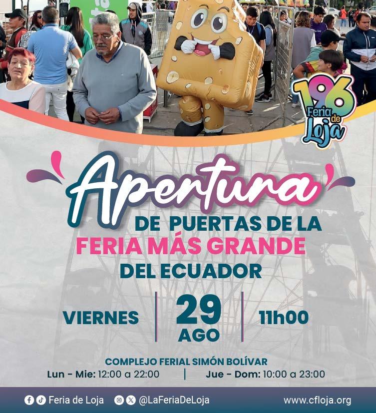 Con un ambiente festivo, lleno de cultura, tradición y emprendimientos, este jueves, 28 de agosto de 2025, se llevó a cabo la inauguración oficial de una edición más de la Feria de Loja. Este año, la feria, llega con innovaciones, una nutrida cartelera artística y la presencia del cantón lojano Pindal, como invitado especial.