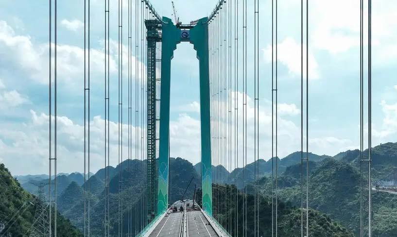 El Puente del Gran Cañón de Huajiang se ubica 625 metros sobre un río y un amplio desfiladero en la provincia sureña de Guizhou, donde también está el Puente de Beipanjiang, de 565 metros de altura, relegado ahora a ser el segundo más alto del mundo.