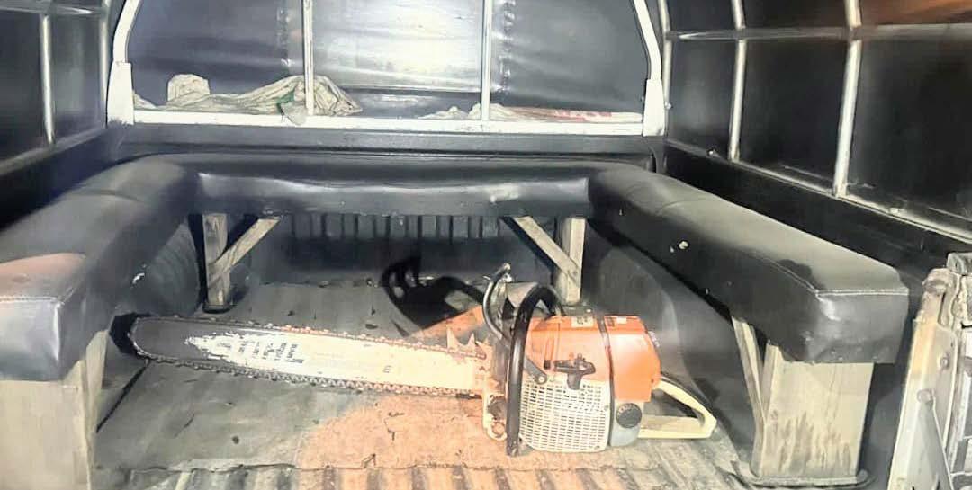 Carro y motocicletas Los elementos de convicción que la Policía Nacional recogió son: una motosierra, con la cual se habrían podado los árboles que se colocaron sobre la vía, y estaba en el balde de una camioneta blanca, doble cabina, marca Chevrolet, de placa de