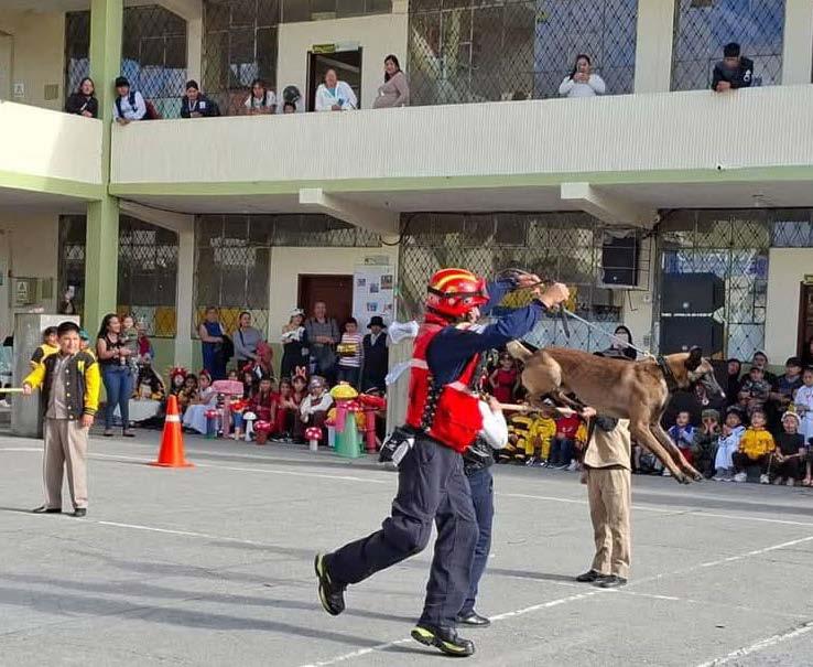 En Loja, canes de bomberos fueron aplaudidos por alumnos