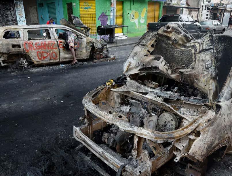 › Vehículos incinerados durante el operativo policiaco en Río de Janeiro, este miércoles.