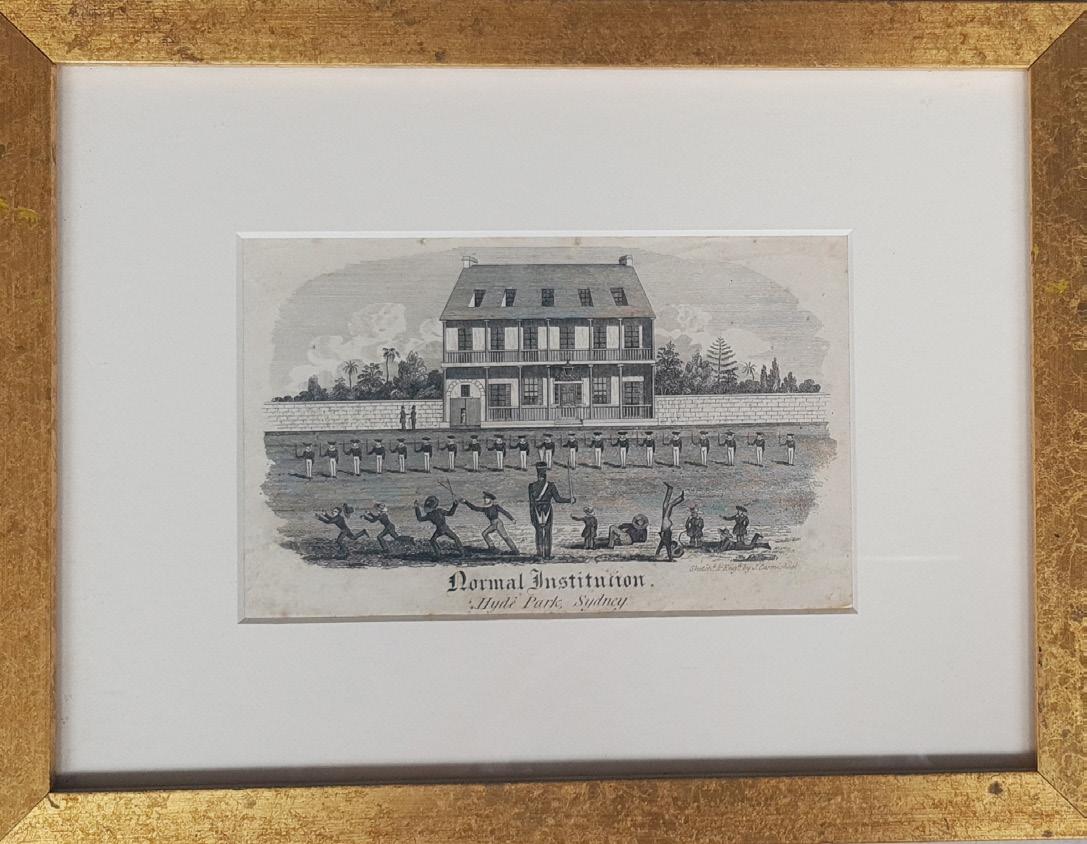 Normal Institution. Hyde Park Sydney. Rare early engraving of Henry Carmichael’s school established in 1835 in Elizabeth Street; St. James’s Church, Court Houses, Sydney. $2000 [5000804 at hordern.com] see description and illustrations at