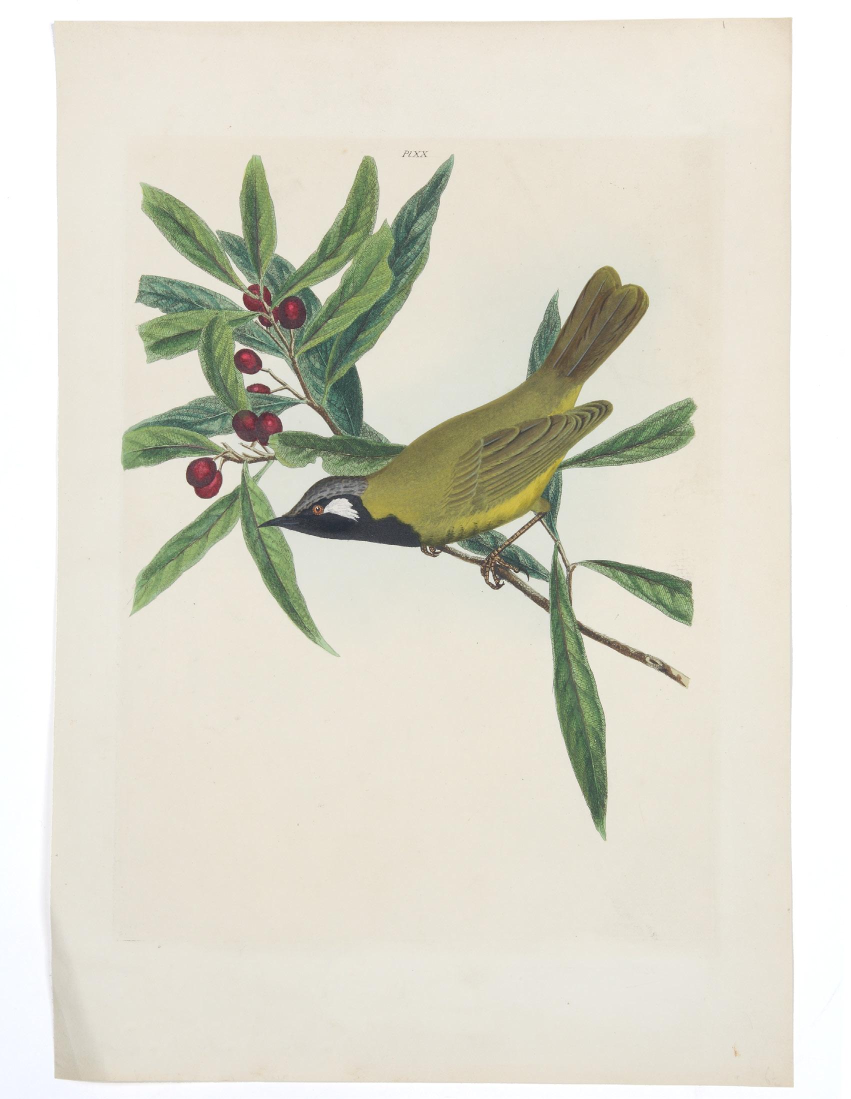 12. LEWIN, John William. White-eared Honey-eater. Engraved plate with contemporary handcolouring, 280 x210mm. London, J.H. Bohte, 1838.