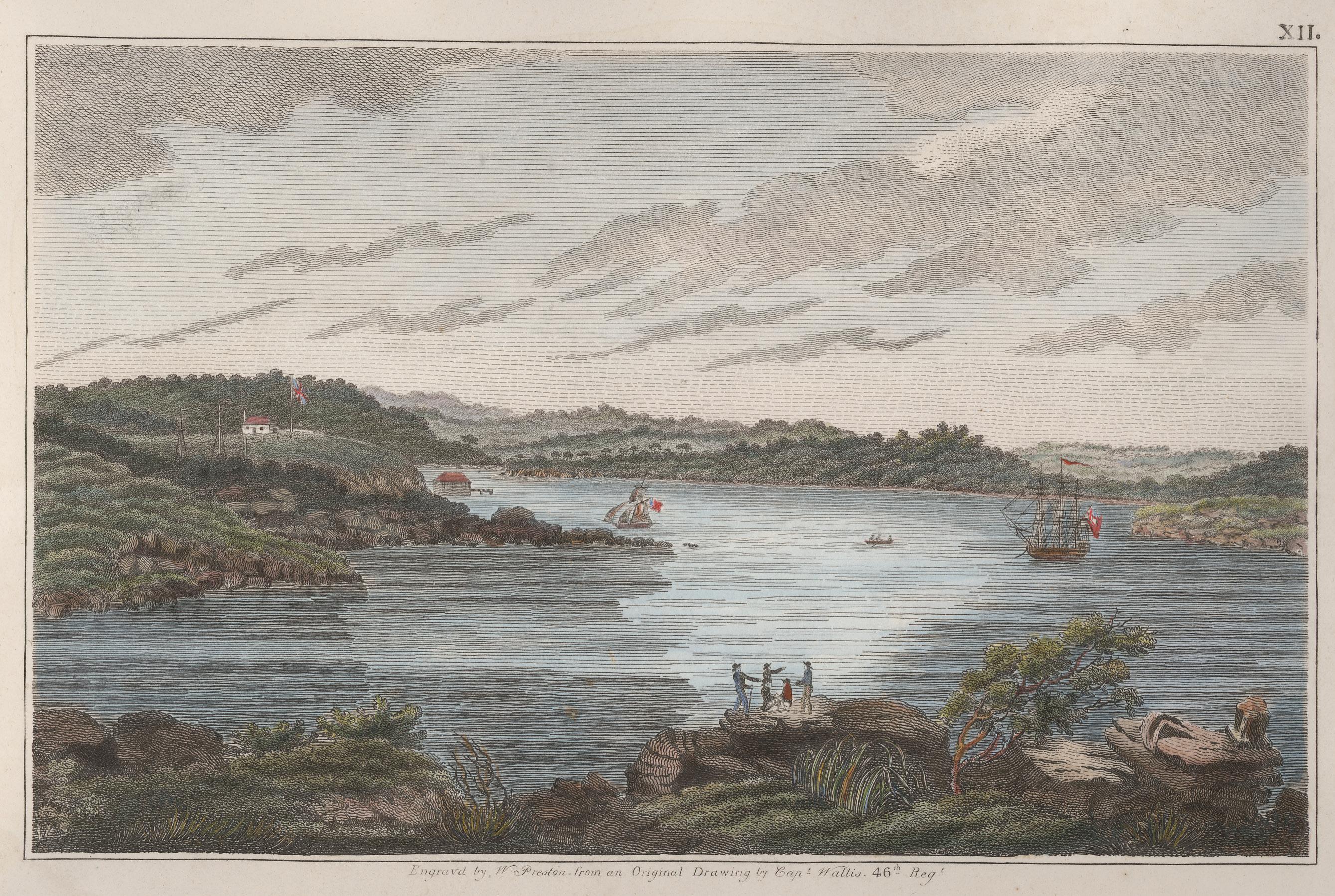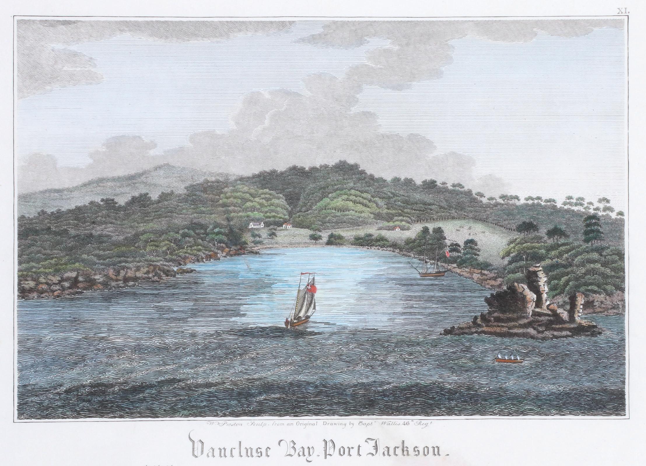 For many years the attribution of Wallis as the artist of the views in An Historical Account of the Colony of New South Wales was a matter of historical conjecture (the implication being that he had appropriated the work of Preston and Lycett). However, the recent revelation of original watercolour material by Wallis establishes him as the artist. Not that this fact diminishes the achievement of the convict engravers: Preston was tasked with working upon the only copper sheets available, manufactured for sheathing the hulls of ships, a difficult material softer than standard engraving copper.