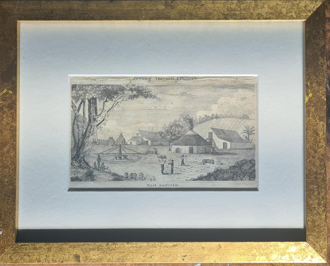 Irrawang Vineyard & Pottery: one of the earliest depictions of an Australian vineyard; Lord’s Mill Botany Bay. Simeon Lord (1771-1840) established his watermill at Botany Bay, New South Wales, to provide the power for the manufacture of shoes, hats, harness and textiles. The watermill was still operating in 1855. Mill Pond and Engine Pond remain as reminders of Lord’s industry;
