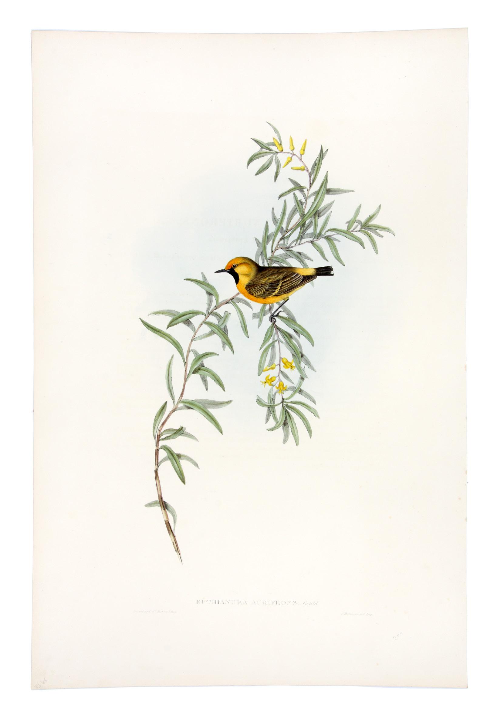 Orange-fronted Epthianura (Epthianura Aurifrons). Hand-coloured lithograph (510 x 350 mm), with letter-press text London, published by the Author, 1840-1869