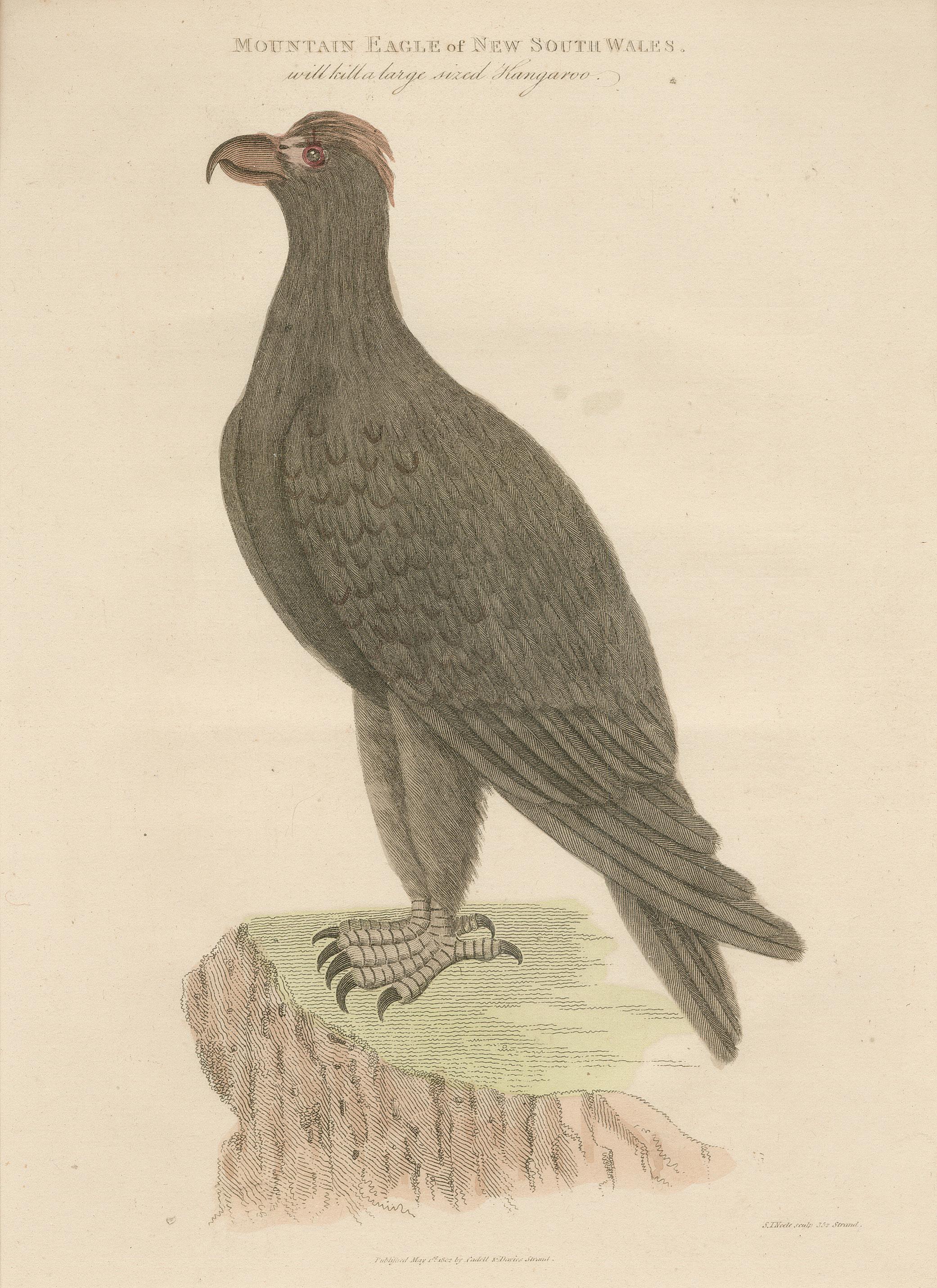 15. [THOMAS WATLING] DAYES, Edward. Mountain Eagle of New South Wales. Handcoloured engraving, 260 x 200 mm. mounted London, Cadell and Davies, 1802.