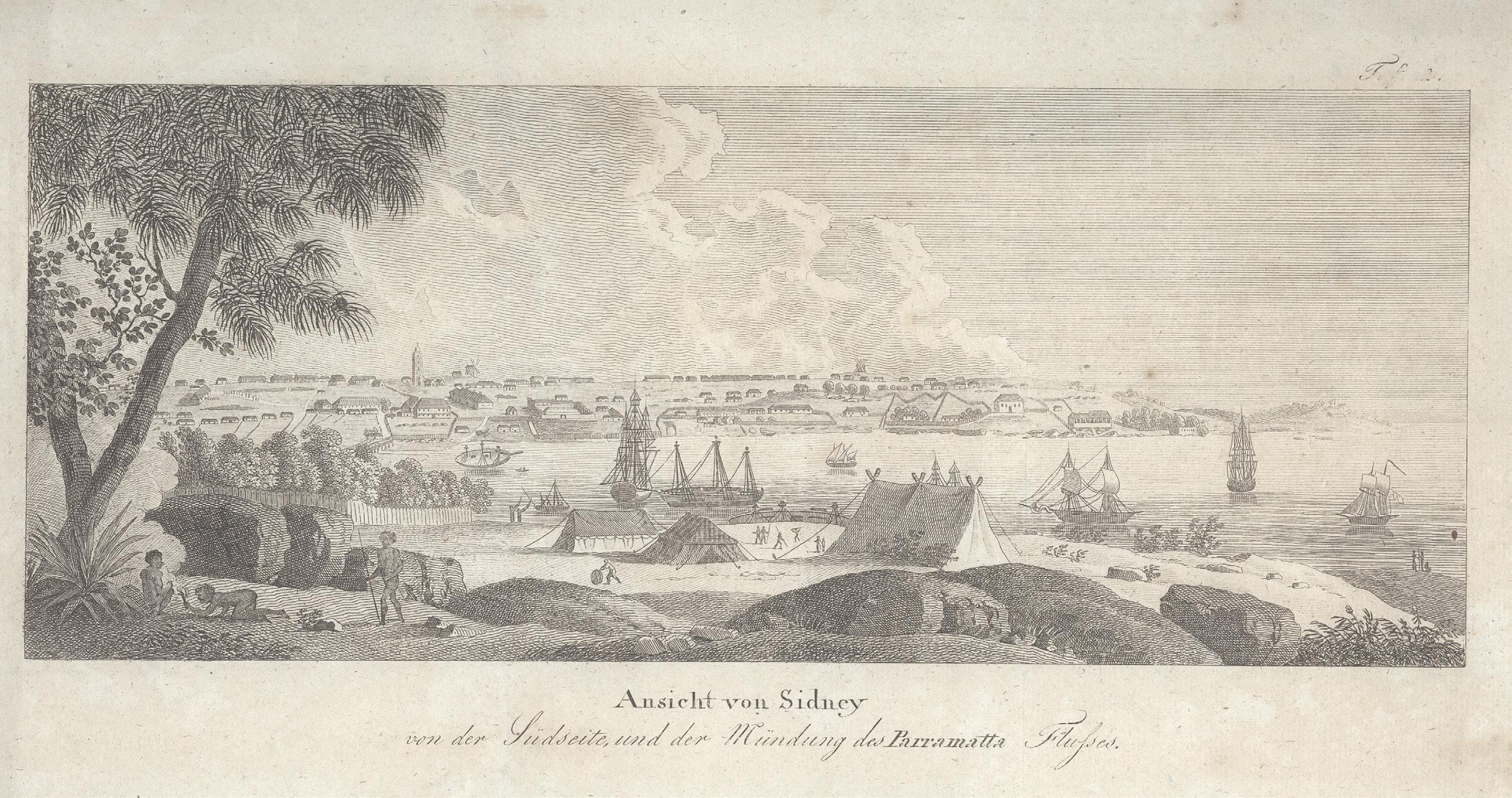 This engraving was produced in London by Edward Dayes, almost certainly from sketches made by the convict artist Thomas Watling. It was included in the last of the First Fleet jour nals to be published, the earliest history of Australia as an English colony.