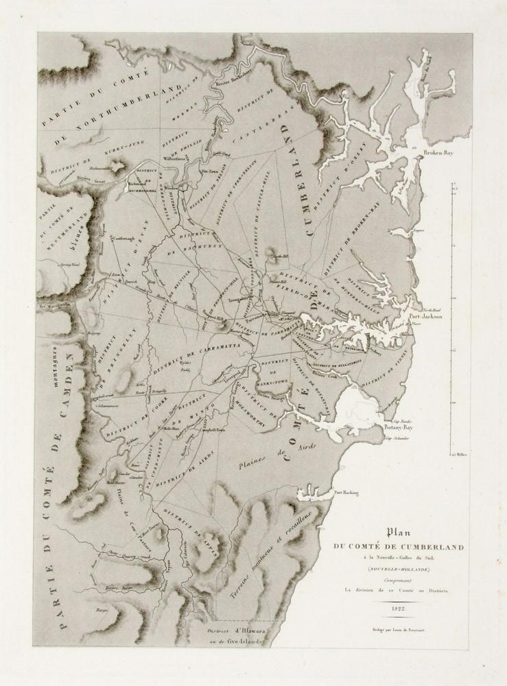 3. FREYCINET, Louis de. Plan du Comté de Cumberland… Engraved chart; 495 x 340 mm. Paris, 1822.