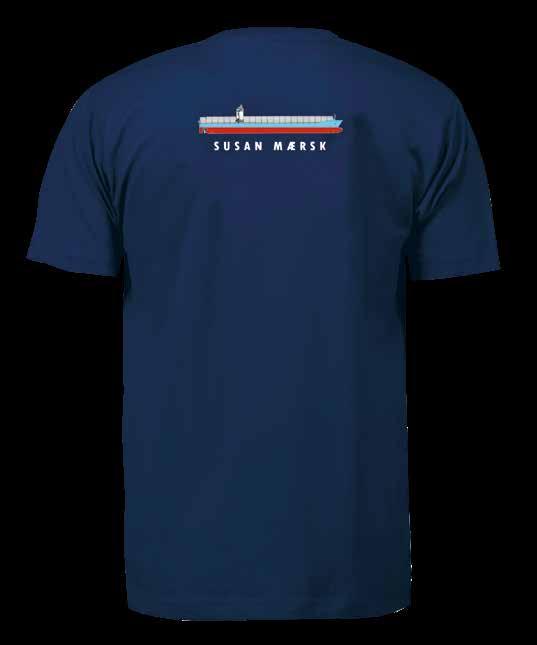 Til gengæld laver vi gerne fede, personlige tryk på T-shirten. Fx med skibstegning og logo.