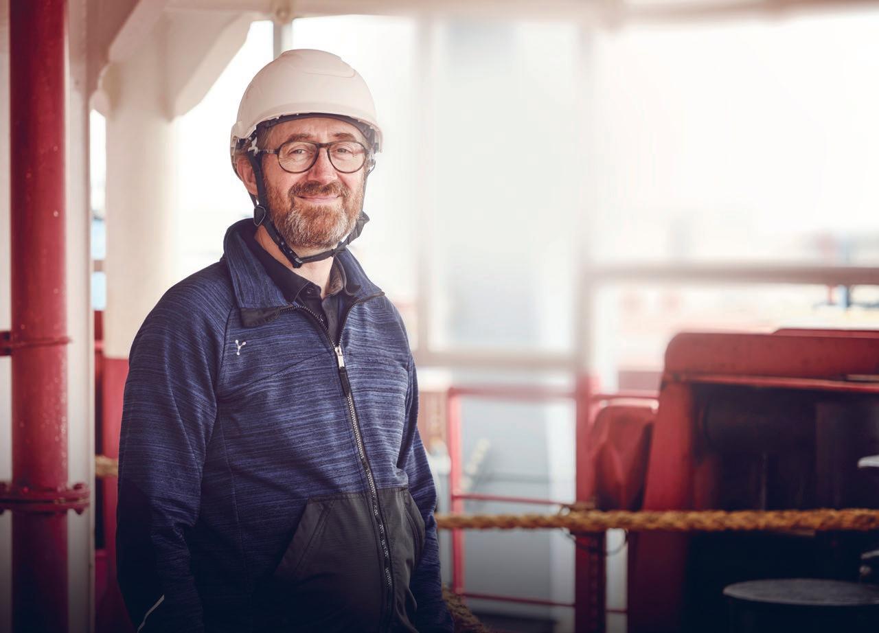 ”Det, der betyder mest for mig, er at have en veltrænet besætning. Alle ved, at jeg er kaptajnen, men jeg går også meget op i at være en god mentor for alle om bord. Det gør mit job nemmere, at jeg er tryg ved at alle kan udføre deres opgaver og de ved, at de altid kan spørge mig om råd. Det er også med til at øge sikkerheden for alle om bord,” siger han.”