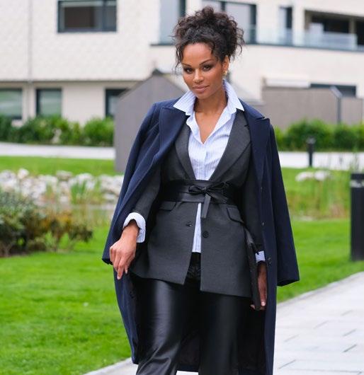 Kåpe, H&M, kr. 699 Sko, Skoringen , kr. 799,Veske ADAX, Mybag , kr. 2999,- Dressbukse, Match, kr. 999,Blazer, Only, kr. 599,95