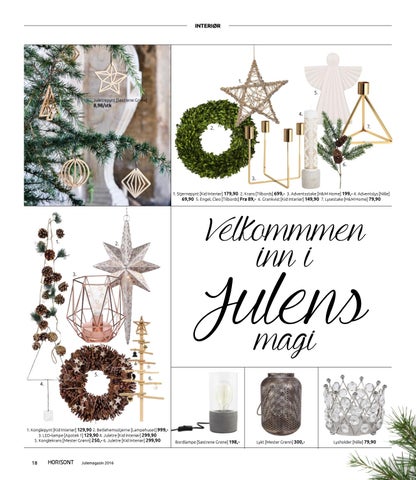 6. 3. 1. Stjernepynt [Kid Interiør] 179,90 2. Krans [Tilbords] 699,- 3. Adventsstake [H&M Home] 199,- 4. Adventslys [Nille] 69,90 5. Engel, Cleo [Tilbords] Fra 89,- 6. Grankvist [Kid Interiør] 149,90 7. Lysestake [H&M Home] 79,90