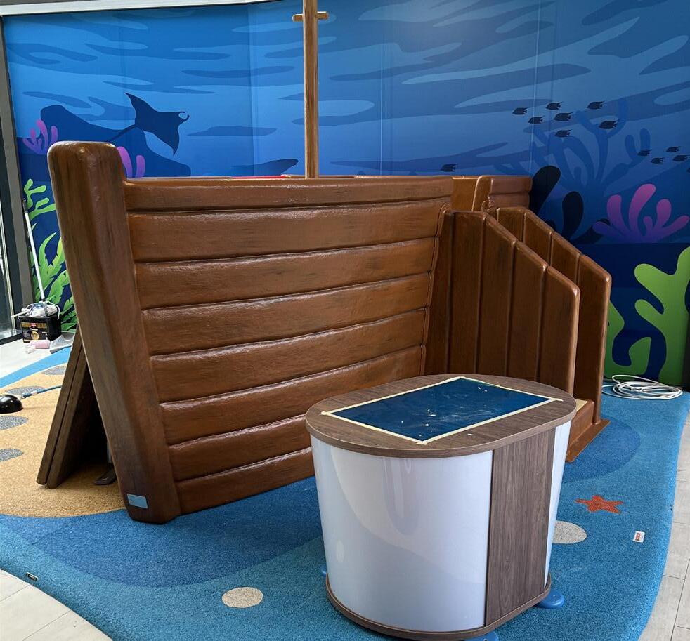 Derfor har vi et lekeområde hvor barna kan leke trygt og ha det gøy – med båt, sklie og interaktiv lek på skjerm. Et perfekt sted å ta en pause, lade opp og fortsette dagen med smil og godt humør.