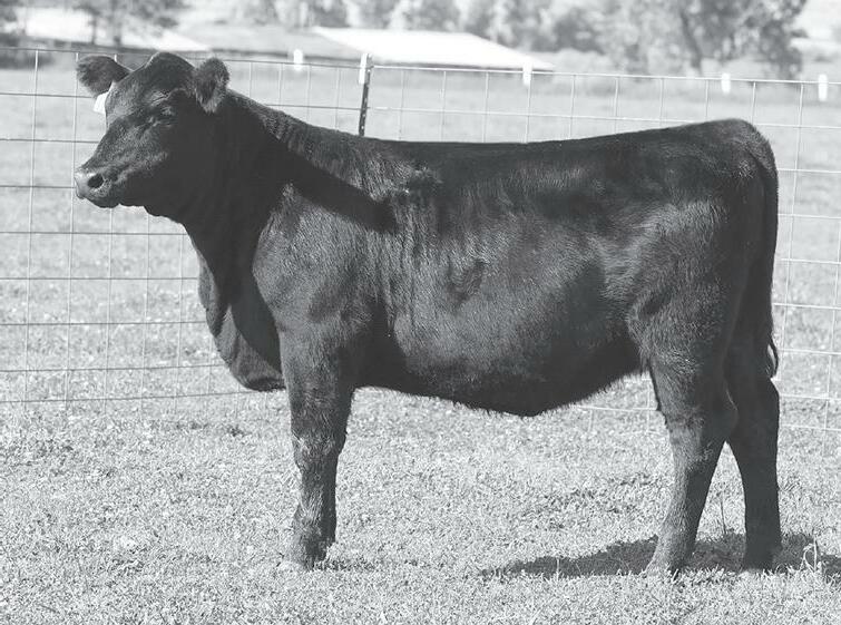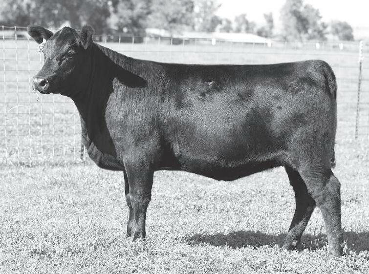 lbs., WWR 115. • Adjusted Yearling Ultrasound Scan Data: IMF 3.30, REA 10.7, ratio 103, Rib Fat .34, Rump Fat .26, ratio 70. Dam’s Production: 2 NR 112. 1 REA 103, 1 Rump Fat 70. She sells as Lot 83. Grandam’s Production: 3 BR 98, 3 NR 101, 1 YR 100. 2 IMF 137, 2 REA 101, 2 Rib Fat 72, 2 Rump Fat 89.She sells as Lot