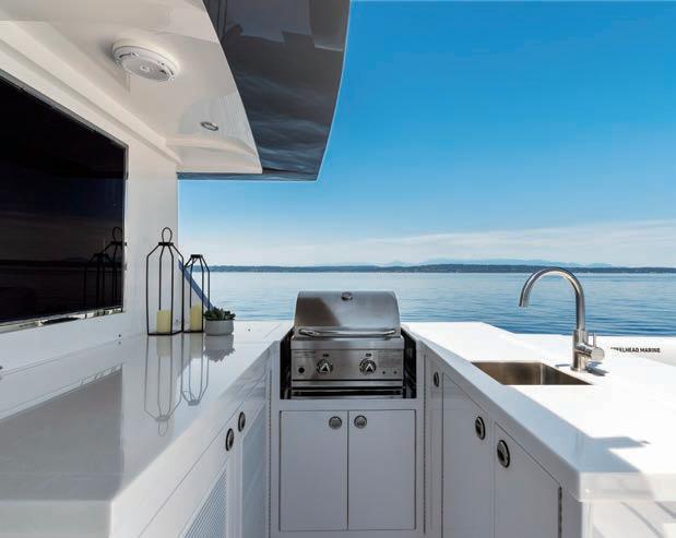 e owners opted for a Zip HydroTap that provides boiled, chilled, sparkling, and ltered water for both convenience and quality. Emphasis on form and function continues with a full-height cool room and a Vintec beverage center positioned to starboard, ensuring every aspect of refreshment is carefully considered.