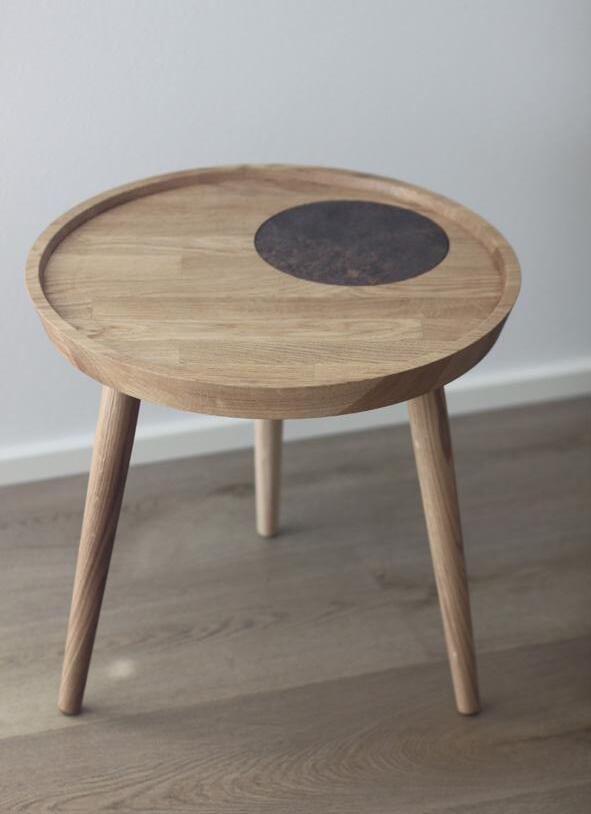Inspired by the nature and with a focus on mixing the materials and exploit even more residual products, our design teams made this new series ”New Moon”, which contain trays and coffee tables in several sizes. The series have a build-in compact laminate plate which can easily be switched between different colours and patterns. There are one optional plate included in the price.
