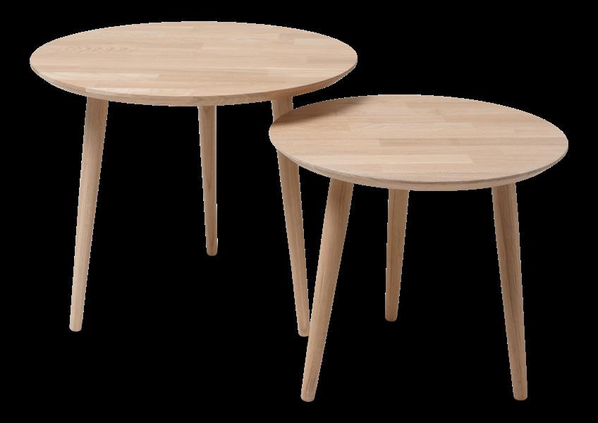 Coffee table set in oak with white oil. Small table item no. 120235, R450 H420. Large table item no. 120236, R550 H460.
