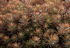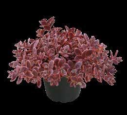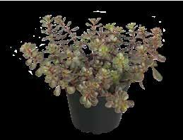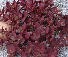 Populär art av marktäckare, som kompletterar Sedums samlingen med sina blanka brunröda blad. Vinter- härdig och -grön.