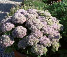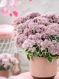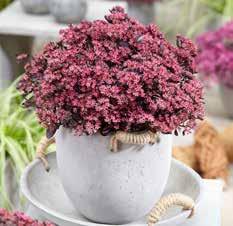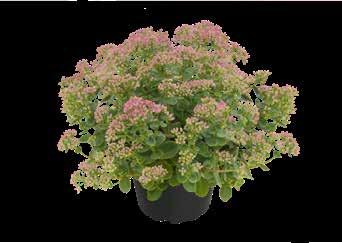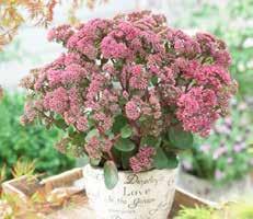 Denna blågrå Sedum är en lågvuxen marktäckare som skapar en fin kontrast med sina grå till lila färgade blad och lysande kransrosa blomning.