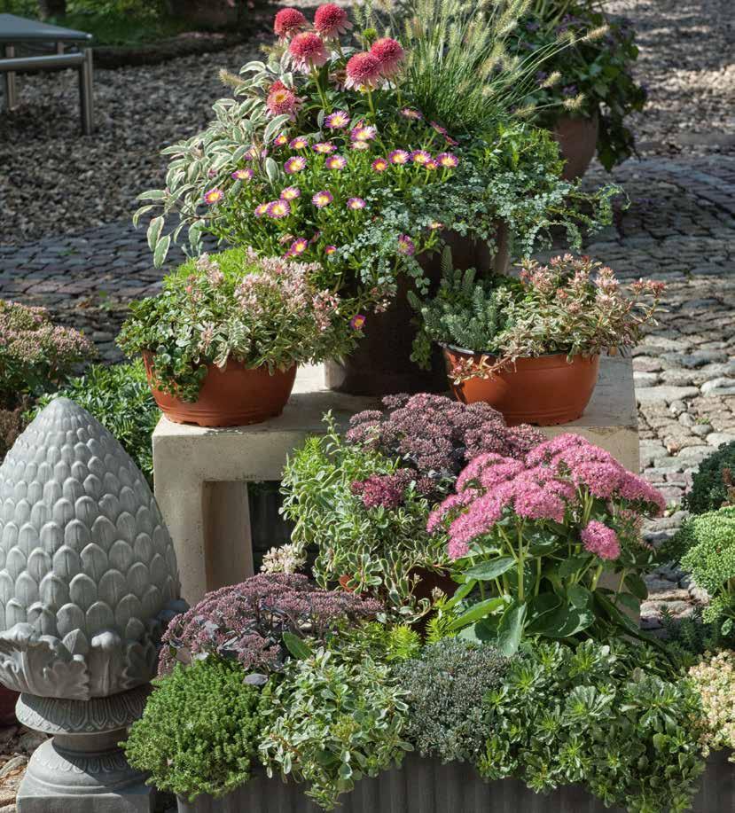Plantera några olika sorter av sedum för en hållbar och tålig rabatt som blommar länge i härliga färger