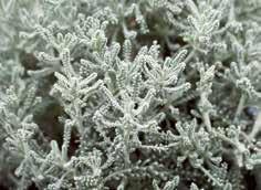 Santolina serratifolia ‘Fine Leaf’ Buskigare och mer kompakt växtsätt än S. chamaecyparissus med fint pinnat, silvergrönt bladverk. Mycket bra kombinationsartikel.