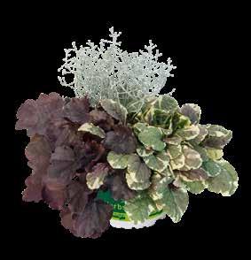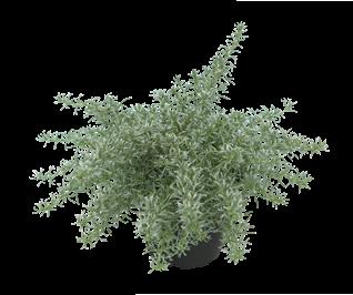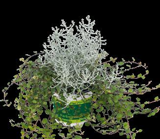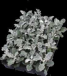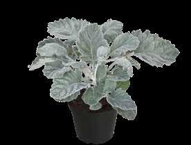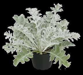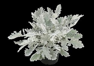 Senecio (Jacobaea)-Hybride ‘Winter Whispers’ Partnersort till ‚Silvergleam‘ med attraktivt silvervitt bladverk, som påminner om ekblad. Robust sort som passar bra även i medelstora krukstorlekar.