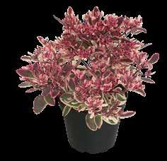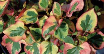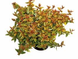 Abelia grandiflora ‘Kaleidoscope’ De gulgröna bladen med mörkgrön fläck får från september varma koppar- och bronstoner vilka bildar en vacker kontrast.