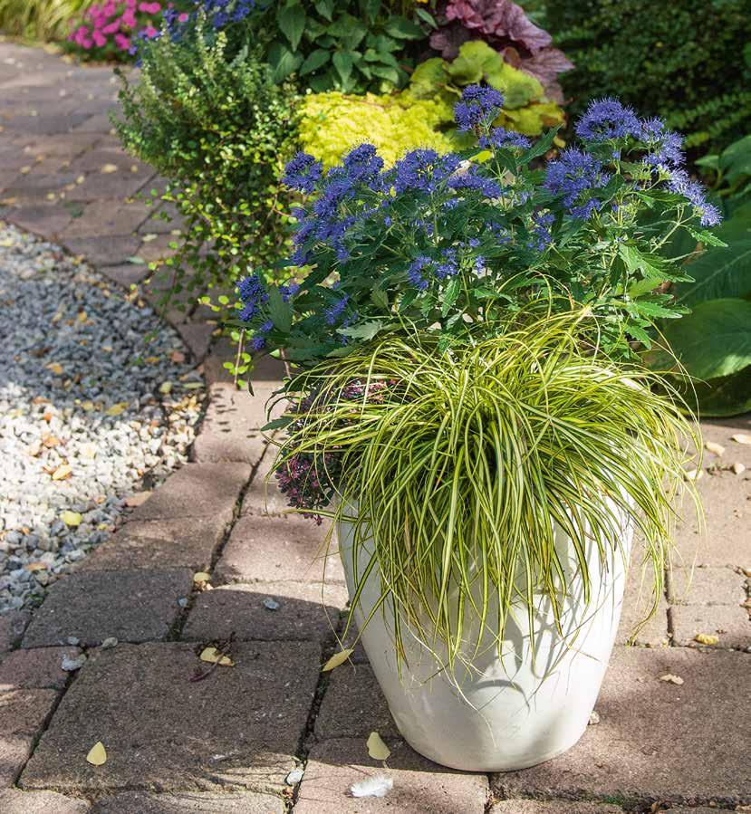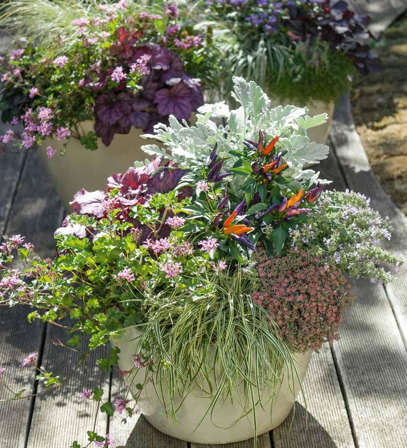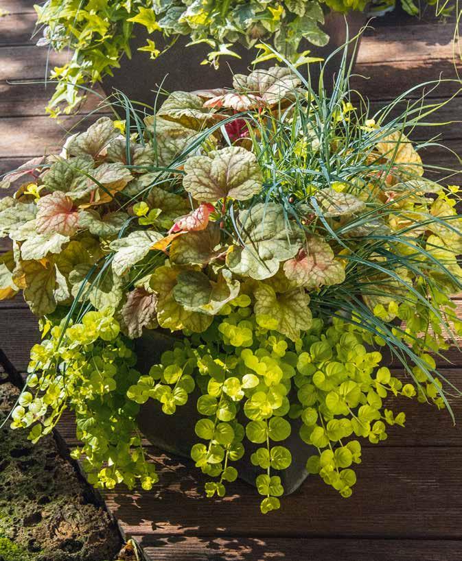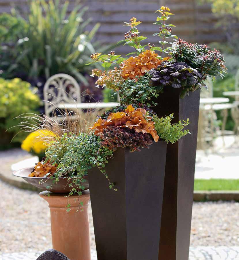 Karamel-orange blad som övergår i olivgrönt gör den till en utmärkt kombinationsväxt i höstsortimentet.