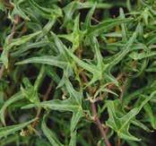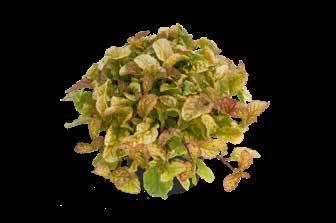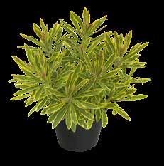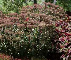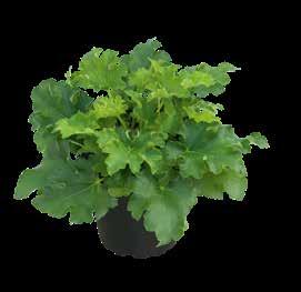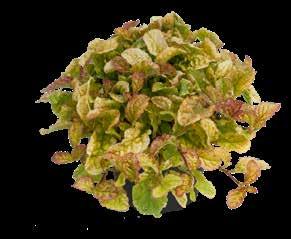 En halvkraftig sort med ljusgrönt till cremefärgat bladverk, som får en purpurton i svalare temperaturer. Överraskande god soltålerans.