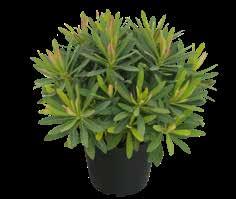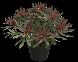 Kompakt med yvig struktur. Kommer från västra Australien. De silvriga grenar ger ‚hullings lika växtsätt‘ en bisarr form. Dess blad är nästan osynliga, som skal på stjälkarna. En oumbärlig kombinationspartner!