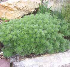 Från medelhavet kommer helgonörten med yvig sfäriska tillväxt och fin-bladiga, aromatiska, silver vita blad. Den är lätt att odla och överraskande frostbeständig . Under våren sätter den guldgula, klotformiga blomknoppar.